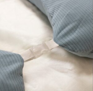 روکش بالش از پارچهی پلی اورتون تهیه شده که قابل جدا شدن و شستشو است. روکش دارای زیپ است. یکی از ویژگیهای منحصر به فرد بالشهای یو “دی روحه” این است که آستر این بالش نیز زیپ دارد و شما به الیاف داخل بالش دسترسی دارید و میتوانید پف بالش را کم یا زیاد کنید. الیاف داخلی از جنس ویسکوز بوده که قابلیت گردش هوا داشته و ضد تعریق است.