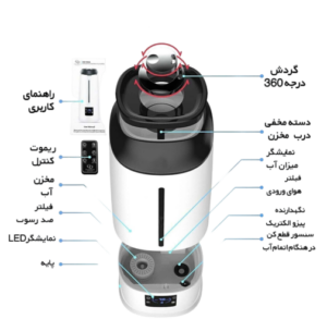 سپس سیستم تهویه ، این آب تجزیه شده را در هوا ی خشک می دمد.خشکی هوا سبب بخار شدن ذرات شده و رطوبت مورد نیاز را ایجاد می کند.خروج مه شفاف و یک دست از بخور منورا مدل HD-1355A قابل مشاهده می باشد.