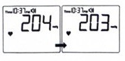 1. نماد باتری همراه با نتیجه آزمایش بر روی صفحه پدیدار میشود این بدان معنی است که زمان تقریبی تعویض باتری فرا رسیده است گرچه بدون تعویض باتری می توان تا ۳۰ بار دیگر اقدام به اندازه گیری نمود.