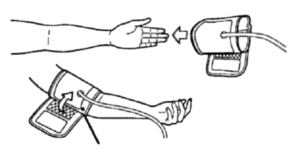 موقعیت کاف را طوری تنظیم کنید که شلنگ هوا در مرکز بازو قرار گیرد و لبه کاف 1 تا 2 سانتی متر بالاتر از آرنج شما قرار گیرد.